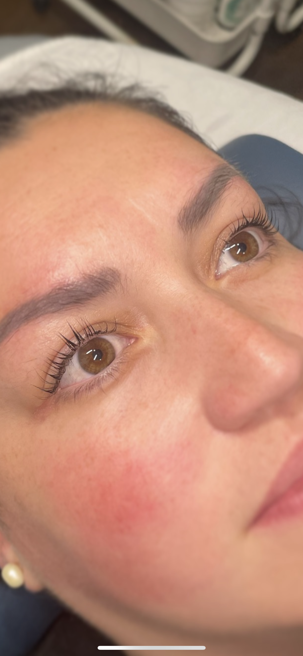 Lasts 4-6+ weeks depending on your natural hair growth cycle, lifestyle, and aftercare. Optional waxing/tweezing is included.